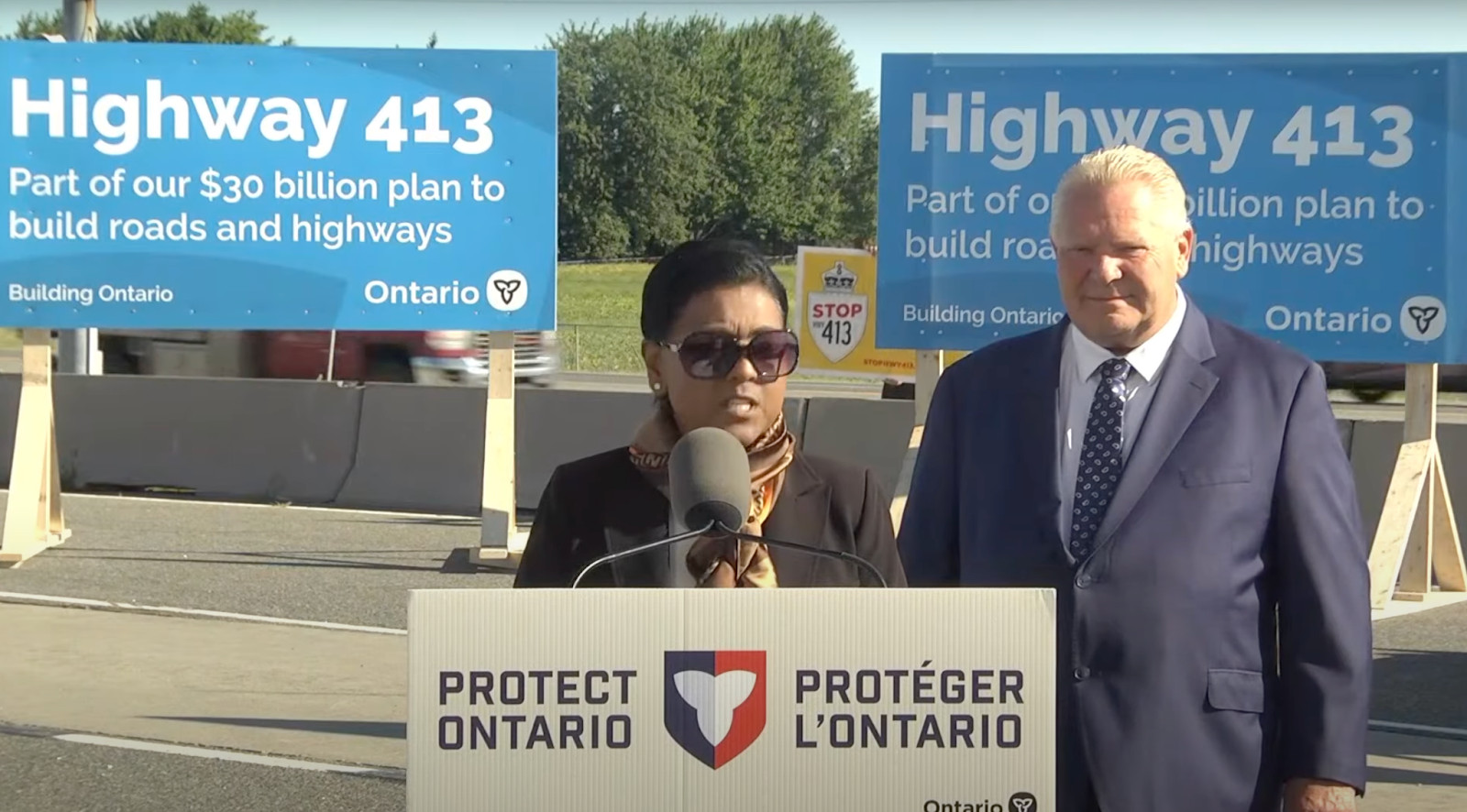 “The Highway 413 corridor will be a big help for our villages… It will also spur the extension of Highway 427 and reduce the number of heavy trucks travelling on Highway 50,” she said on August 27 last year, standing next to Ford at a press conference for the beginning of Highway 413’s “early works”.