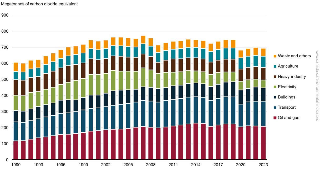 A recent report from the Canadian Climate Institute warns Canada is “not on track” to meet its legislated emissions reduction target of 40 to 45 percent by 2030, as greenhouse gas emissions stagnated in 2024 at 694 megatonnes, just 8.5 percent below 2005 levels.