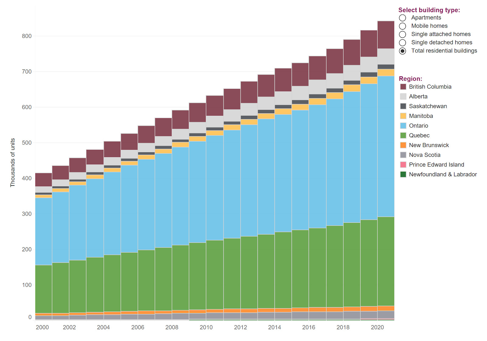 The number of residential heat pumps installed in Canada doubled over the last two decades to over 800,000 units. Over 60 percent of that increase came from single detached homes in Ontario and Quebec.