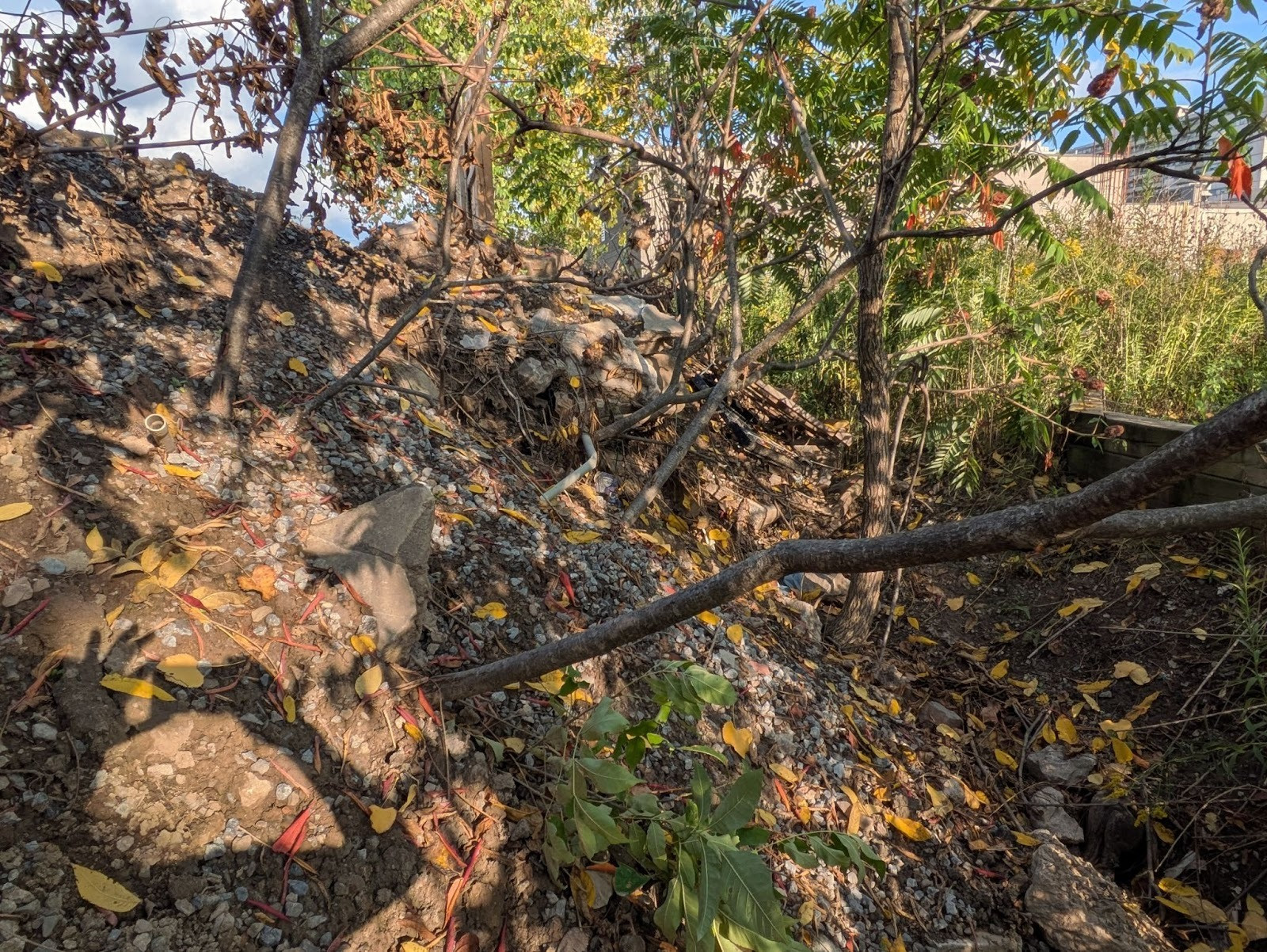 Piles of dirt, gravel and rock sit piled next to a protected ravine in St. Catharines.