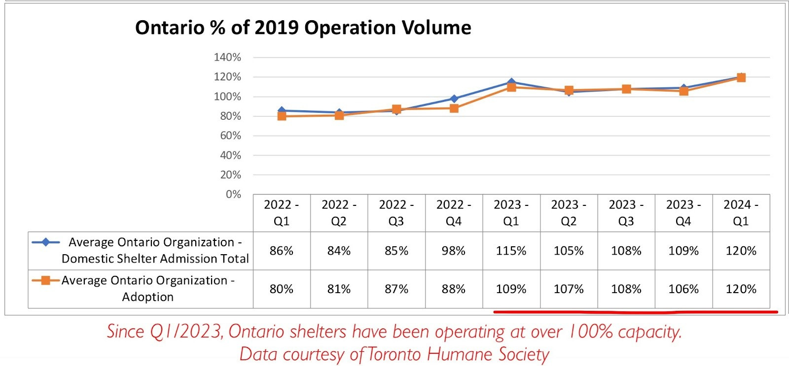 - Municipal animal controls, humane societies and rescues have been operating at over capacity levels since the first quarter of 2023.