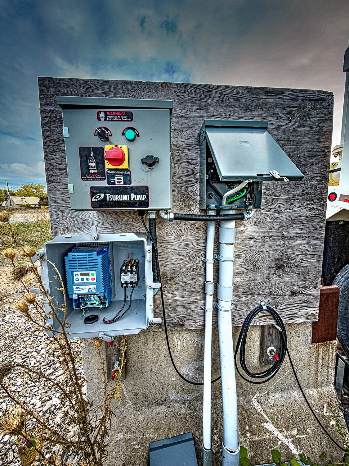 Visual observations suggest the system is not operational. On Thursday, October 23, doors on several large water tanks were wide open. Sections of piping were disconnected. The main power switch on the control panel was turned off. No sound of pumps or water flow was evident, and there were no indications that monitoring equipment is active.