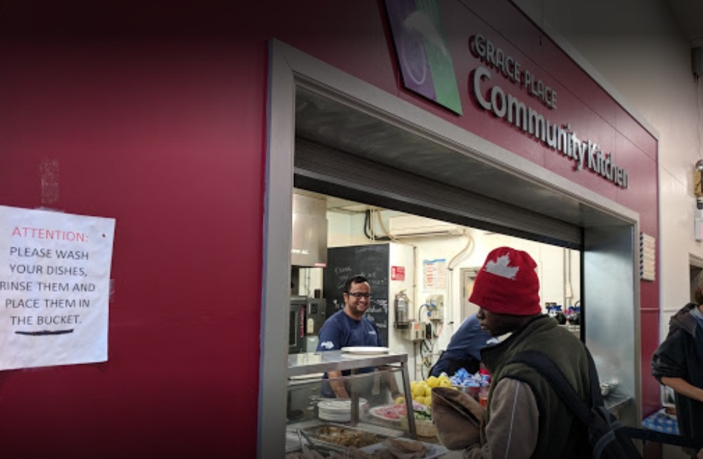 People can drop in for a meal prepared by volunteers inside the kitchen at Grace United Church in downtown Brampton.