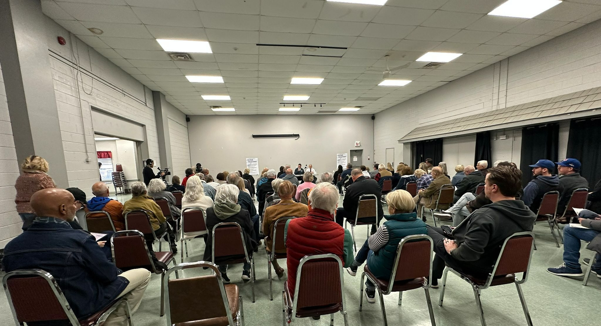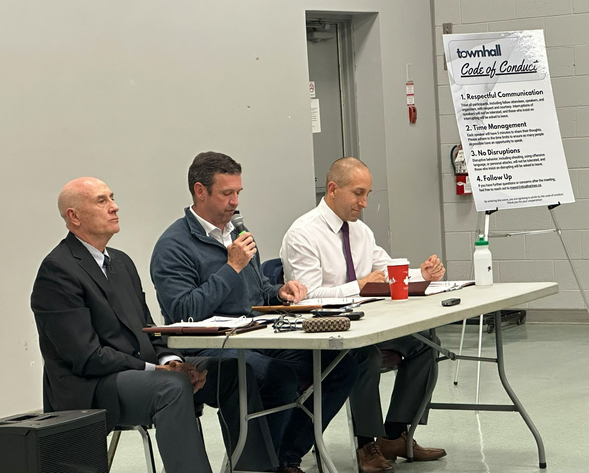 About 75 residents filled the Grantham Optimist Club on Wednesday evening for a two-hour open-mic town hall hosted by St. Catharines Mayor Mat Siscoe and Port Dalhousie councillors Bruce Williamson and Marty Mako.