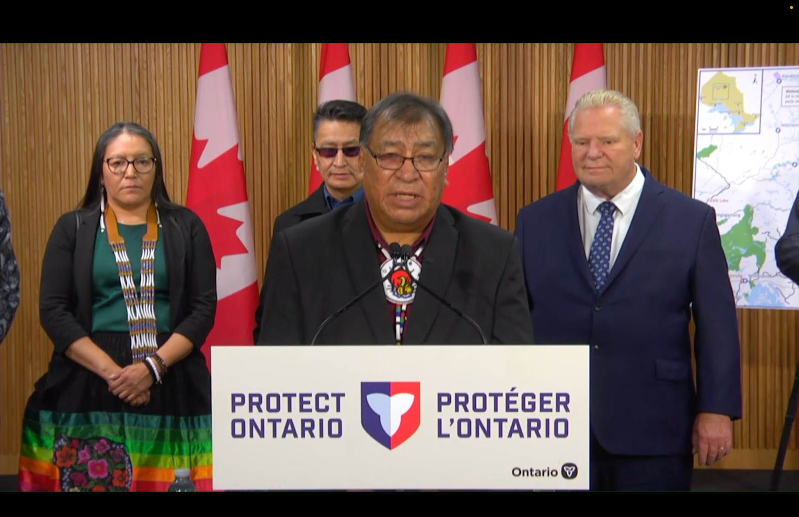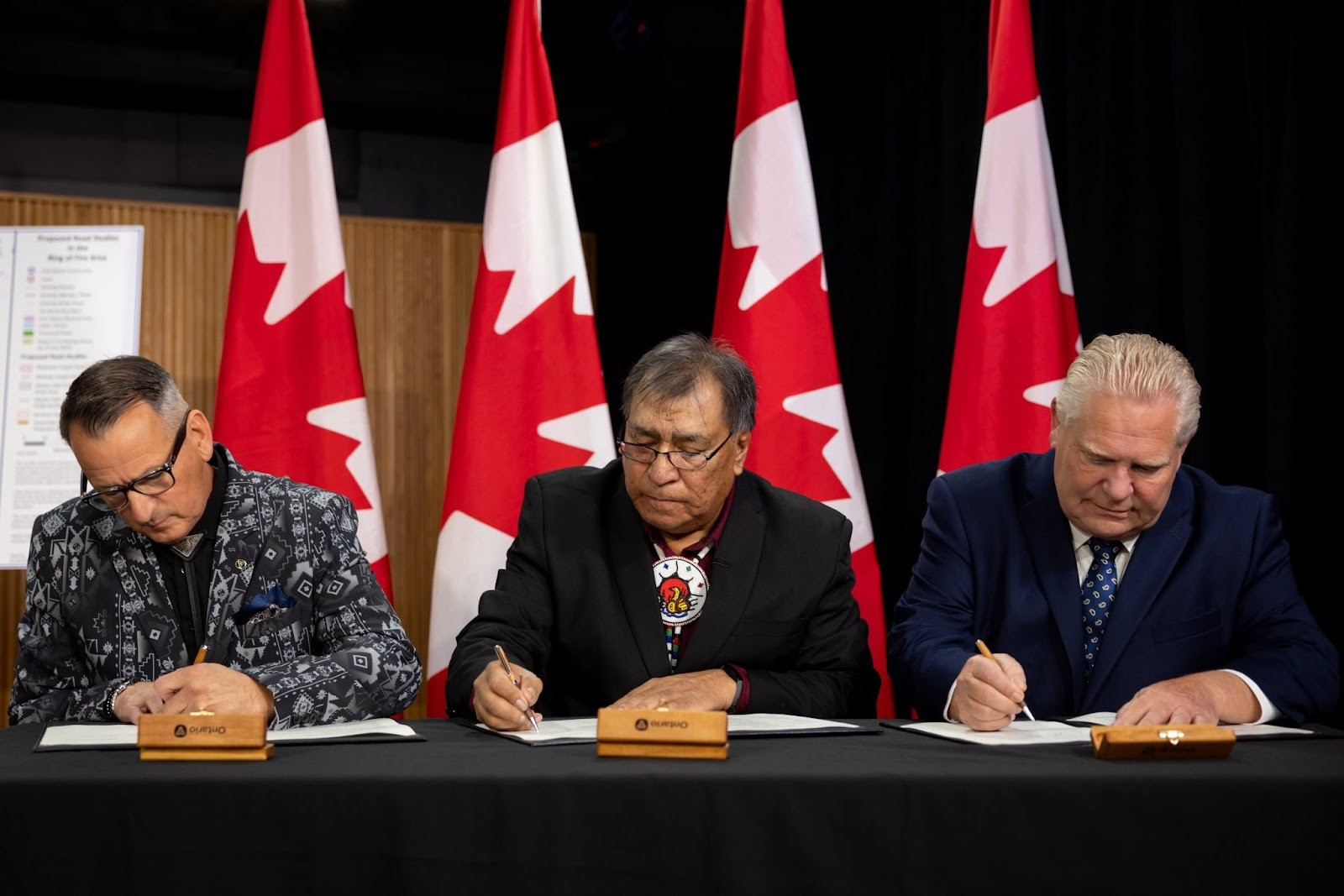On October 29, Premier Ford alongside Greg Rickford, Minister of Indigenous affairs and First Nations economic development, and Webequie First Nation Chief Cornelius Wabasse, announced a Community Partnership Agreement aimed at accelerating road construction in the ecologically sensitive, mineral-rich Ring of Fire.