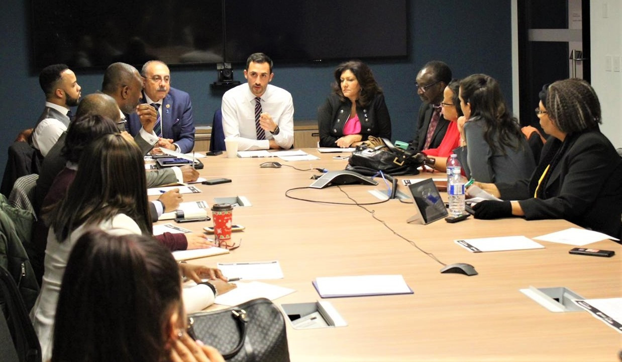 Kola Iluyomade (left) with Tim Vining (second from left) during a PDSB meeting.