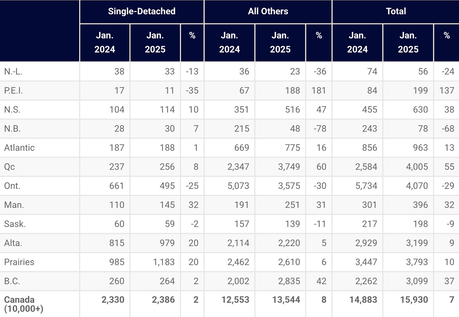 Ontario ranks third among Canadian provinces with a decline in housing starts.