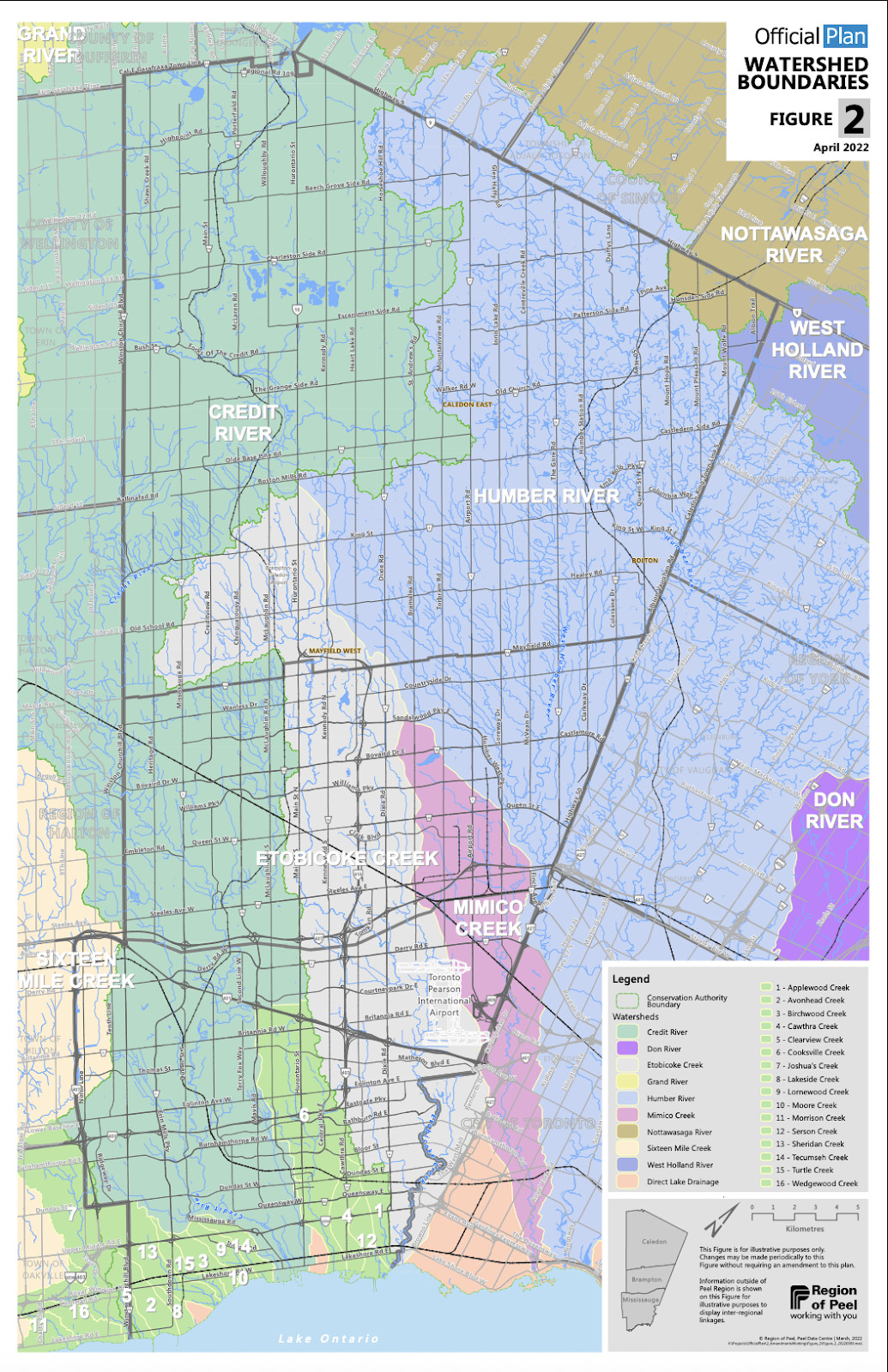 Peel Region encompasses five major watersheds and numerous smaller sub-watersheds, managed by three conservation authorities namely Credit Valley Conservation, Toronto and Region Conservation Authority, and Halton.
