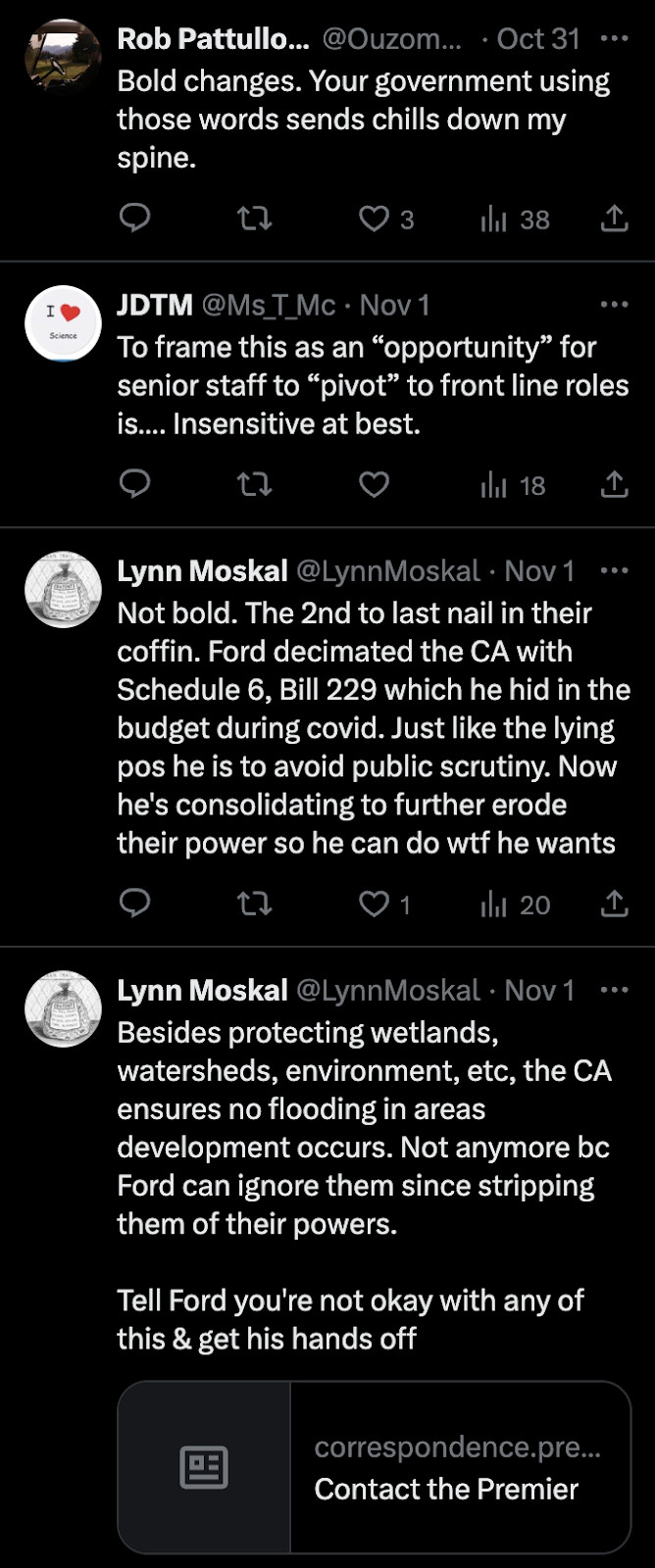 Tedjo, who sits on the boards of CVC and Conservation Halton, shared that both the CAs were caught off guard by the announcement, confirming there had been no consultation with conservation authorities prior to the provincial release.