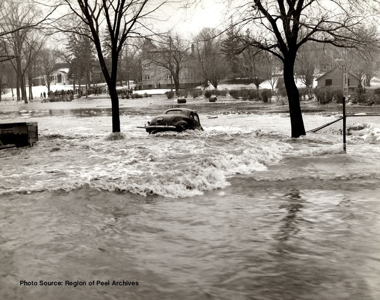 Flooding in downtown Brampton in 1948. While the concrete bypass channel built afterward helped mitigate the flood risk posed by Etobicoke Creek, the Toronto and Region Conservation Authority has made it clear the risk has not been eliminated. With climate change increasing the frequency of major storm events, the risk could actually be increasing.