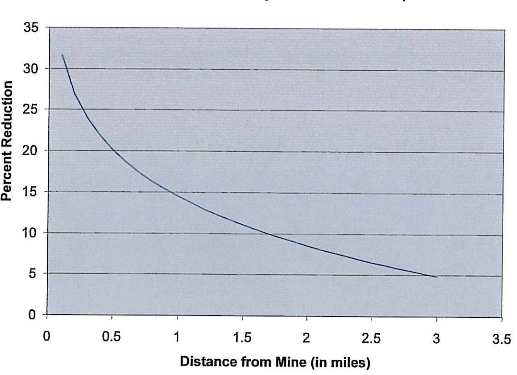 A 2006 study examining gravel operations in Richland Township, South Carolina, in the U.S. found a stark relationship between proximity to a gravel pit and declining home prices. A house located just half a mile from a mine was estimated to lose roughly 20 percent of its value. At one mile, the loss dropped to 14.5 percent, at two miles, 8.9 percent and at three miles, about 4.9 percent.