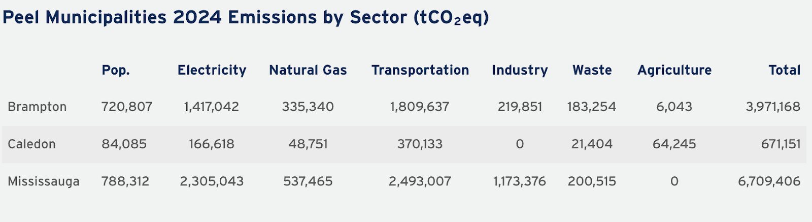 Transportation remains the highest emitting sector in all three municipalities in the Region of Peel. In 2024, Brampton’s transportation emissions stood at 1.81 million metric tonnes of carbon dioxide equivalent.