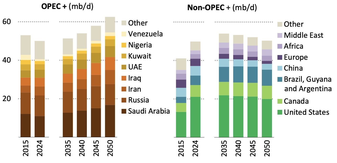 Canada alongside the U.S., Brazil, Guyana and Argentina is increasing oil production while OPEC+ is also expanding, and by 2050 it is expected to produce 15 percent more than its previous record levels.