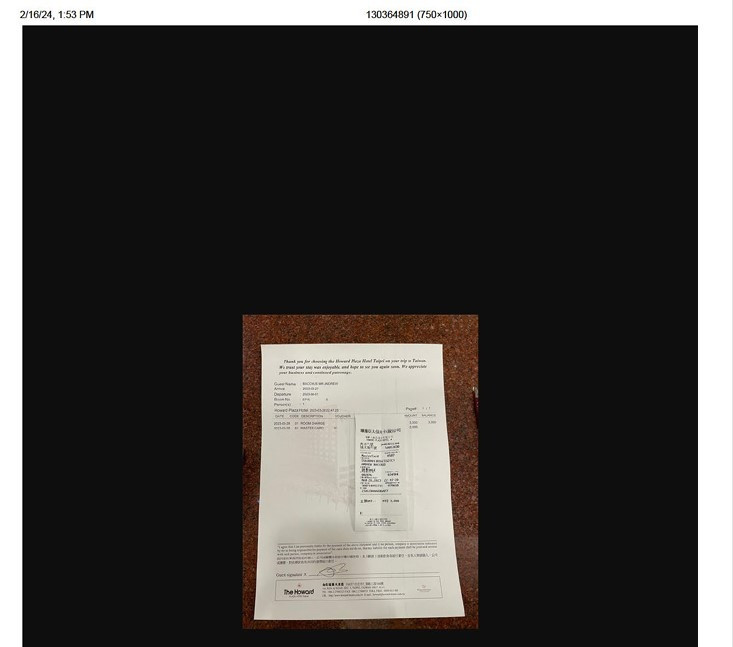 The watermark of this receipt from Andrew Bacchus appears to be from the Howard Plaza Hotel in Taipei, but the cost of the stay is impossible to read. It’s unclear if Councillor Paul Vicente, also in attendance on the trip, stayed at the same hotel as no receipts for his accommodations were shared by the City of Brampton.