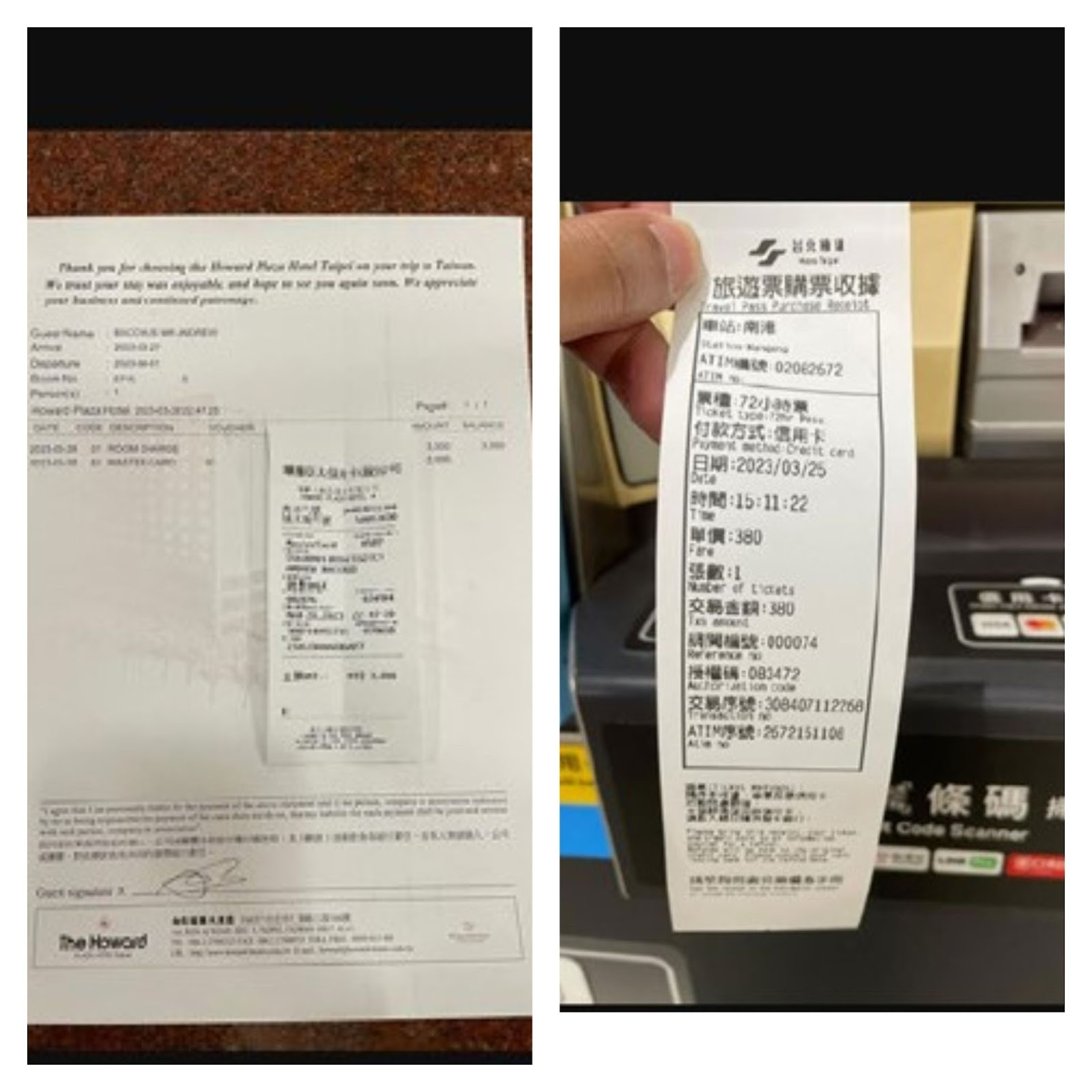 The receipts show the lion's share of the expenditure is for the airfare: $8,720. A one-way flight from Taipei to Lisbon for Vicente was billed at $3,102.26 on Emirates (no information was provided to explain why he flew on an expensive airline, why he booked a one-way ticket and why Vicente went to Portugal; his background is Portuguese). His total flight charges via “Anglo-Scottish American Travel Agency”, according to receipts, were $5,594, including the Toronto to Taipei leg ($1,199.16) and one-way return flight from Lisbon to Toronto ($1,223.25).