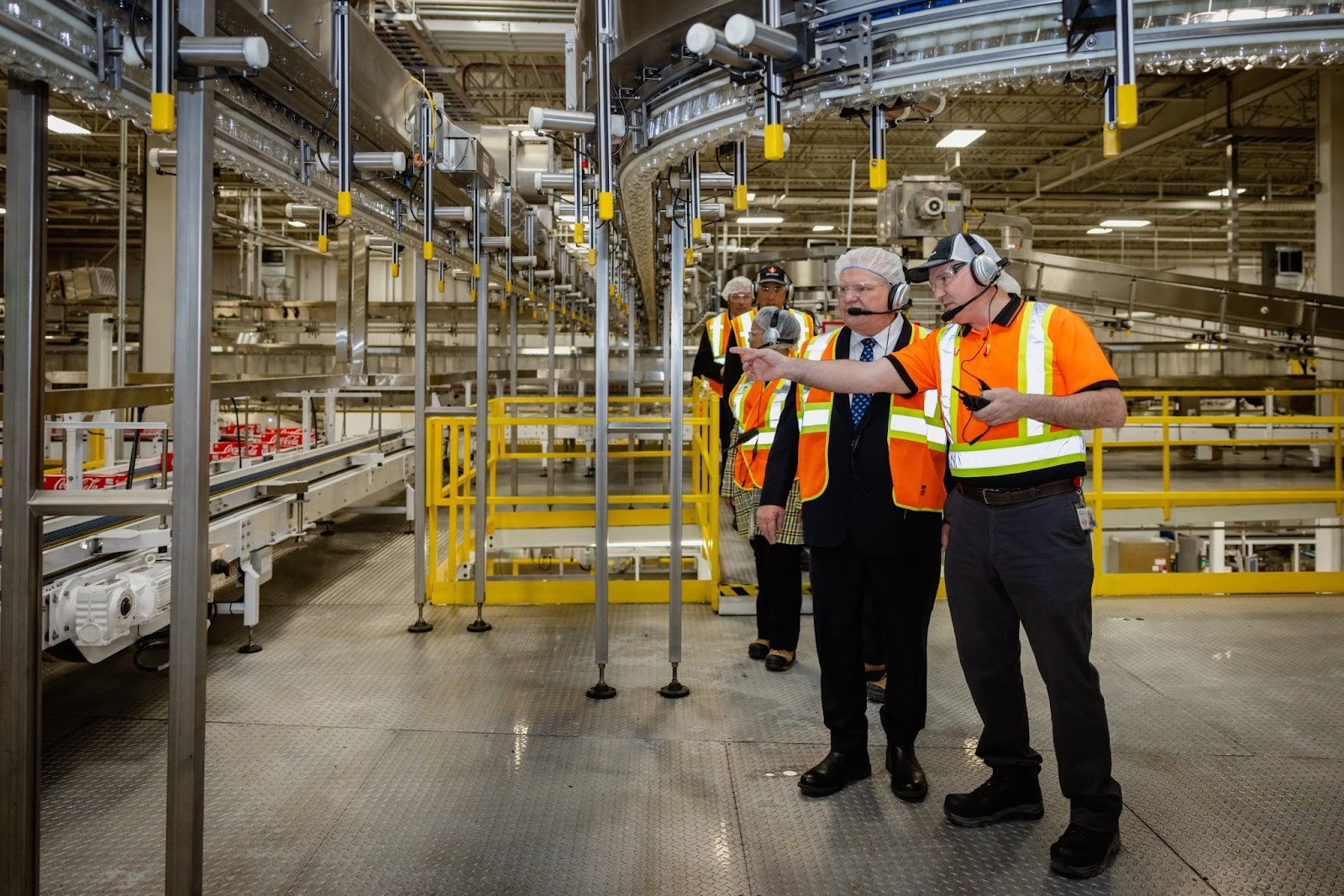 Premier Doug Ford visits the Coke Canada Bottling facility in Brampton during Tuesday’s $141-million expansion announcement.