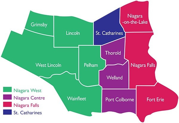 The 12 municipalities that comprise Niagara Region. All of them make up the upper-tier municipality of Niagara Region.