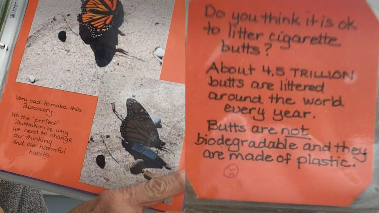 A monarch butterfly lay on the sand, wings outstretched in delicate brilliance on a perfect sunny day. For a moment, it looked like a canvas set against the shoreline, a scene painted by Mother Nature. But when it folded its wings, the beautiful butterfly was perched on… a cigarette butt.