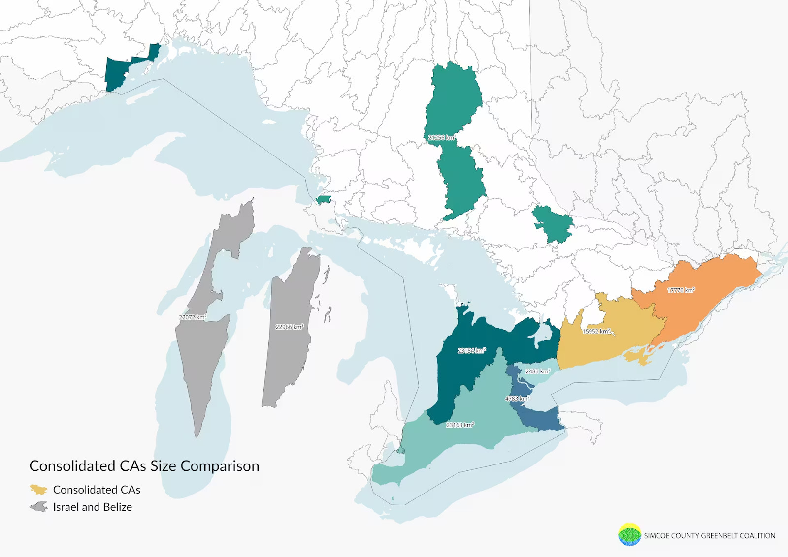 “Some of the proposed consolidated conservation areas are roughly the size of small countries, like Israel and Belize,” a Simcoe County Greenbelt Coalition analysis notes.