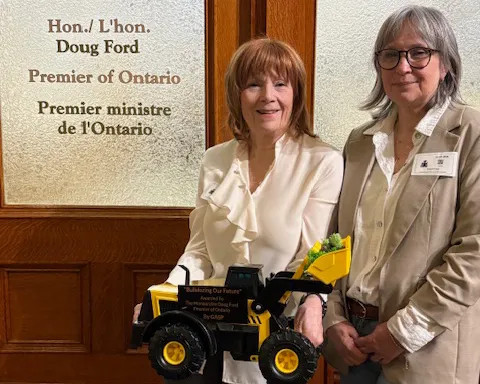 On March 12, Victoria Creese (right) and Sharon Sommerville from Grand(m)others Act To Save The Planet (GASP) delivered the ‘Don’t Bulldoze Our Future’ award to Ontario Premier Doug Ford’s office.