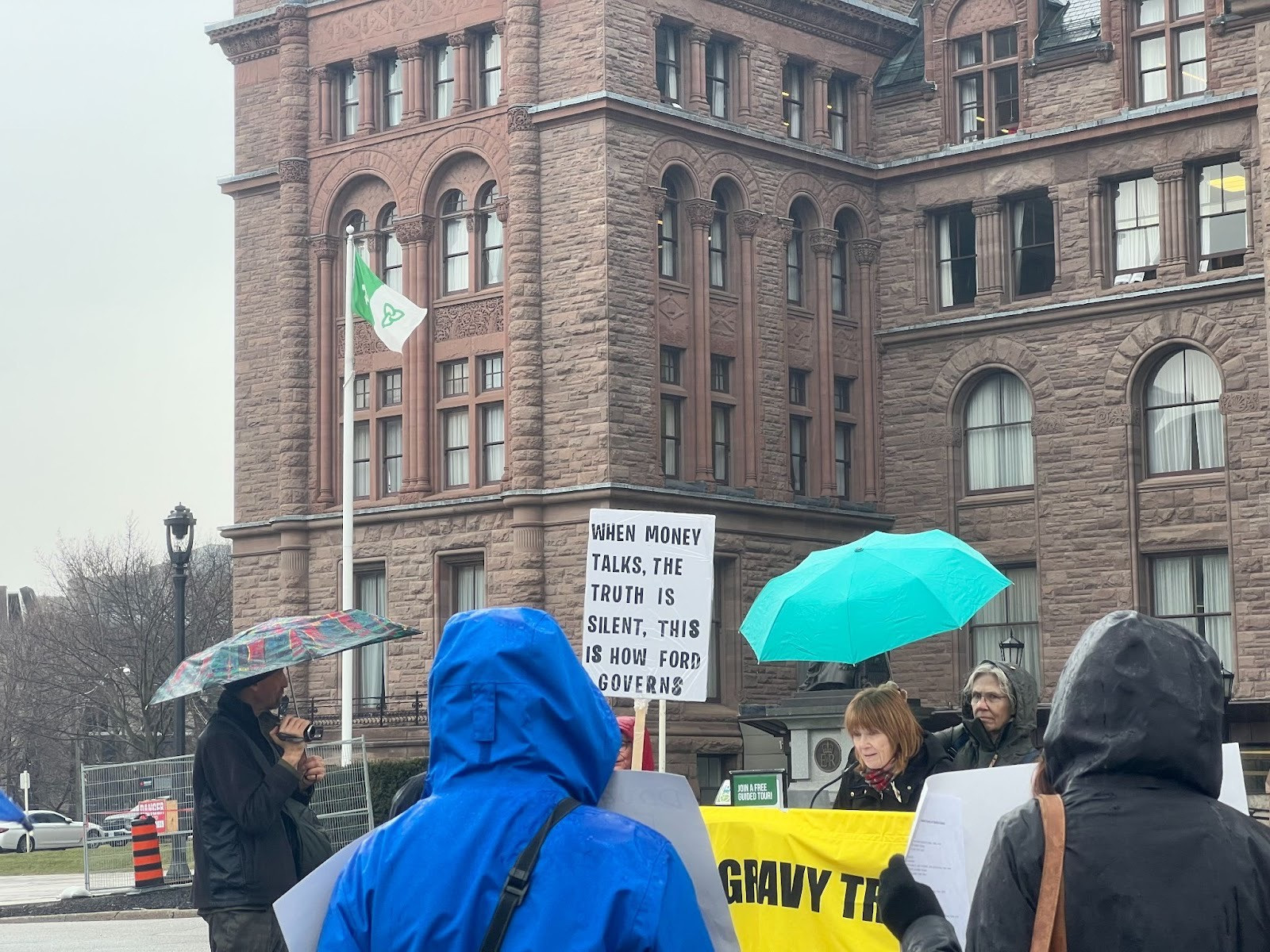 It’s not their own future they fear losing. It’s their children’s, their grandchildren’s. That’s what brought them here — through wind, through rain, through yet another provincial budget day where hope felt increasingly fragile.