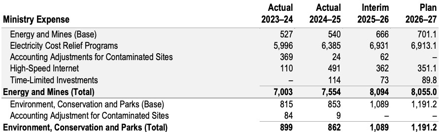 Similar to last year, the Ministry of Energy and Mines was allocated over $8 billion in funding while the Ministry of Environment, Conservation and Parks received just over $1 billion.