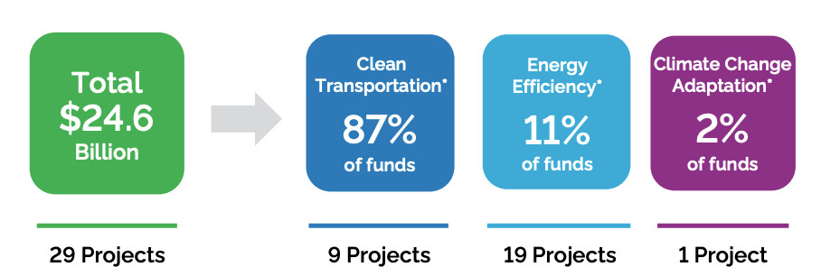 Ontario has issued 21 Green Bonds totalling $24.6 billion since 2014–15: 29 projects have received or are set to receive funding through these bonds, including the recently opened Eglinton Crosstown LRT, which secured $3.7 billion through ten separate green bond issuances.