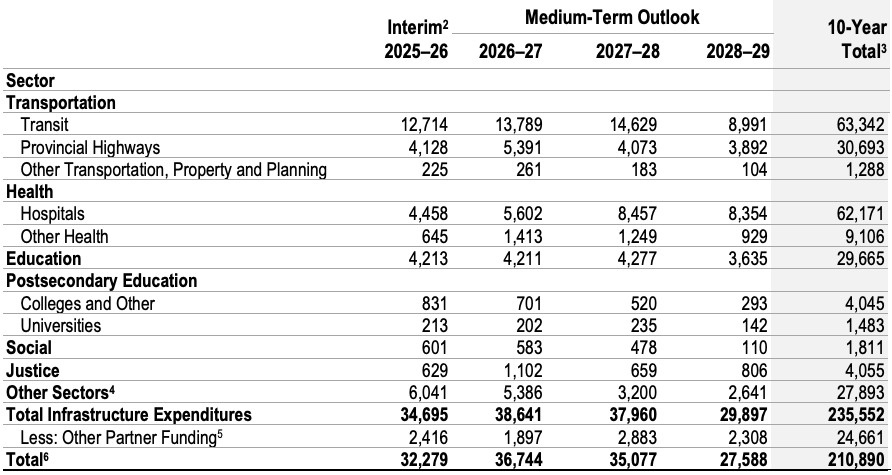 Over the next ten years, Ontario plans to spend over $63 million on transit and more than $30 million on highways.